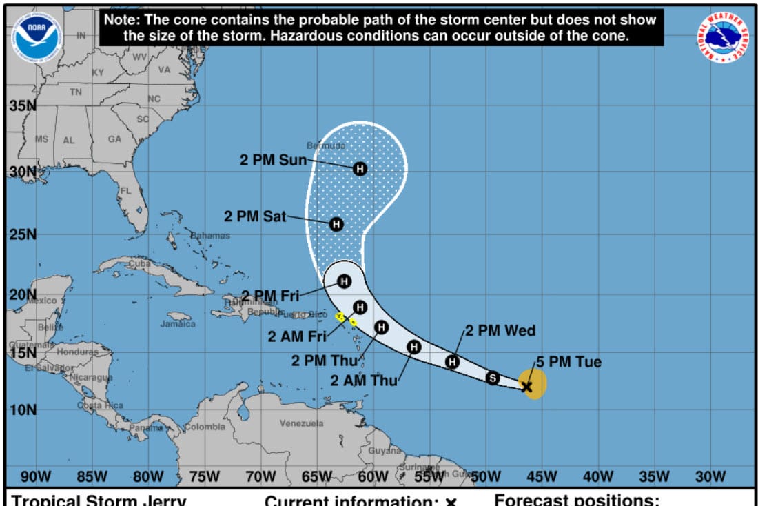 In the tropics, Jerry should eventually become a hurricane and brush by some of the northern Leeward Islands — probably causing fringe effects. Then, it will head out to sea just like the others this year. Again, I just can’t see anything making it from the Main Development Region to the US. The storm that will develop off the Carolinas in the next few days and stalling somewhere off the East Coast may take on hybrid — mixed tropical and winter storm — characteristics. It will produce rough seas, winds, rain, but not significant damage.