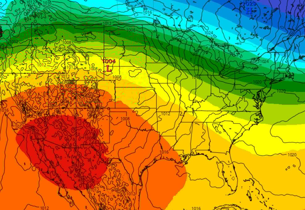 Models are beginning to break that upper high down and move it east during the following week. Here’s the ECMWF for next Sunday March 29 showing the upper level high has moved east to Florida with troughs and showers coming into the West Coast. We should see a chance of showers maybe as soon as March 30 with more clouds and slightly cooler high temperatures. Then, the troughs on the West Coast will consolidate and push a cold front through here about April 2 or 3.